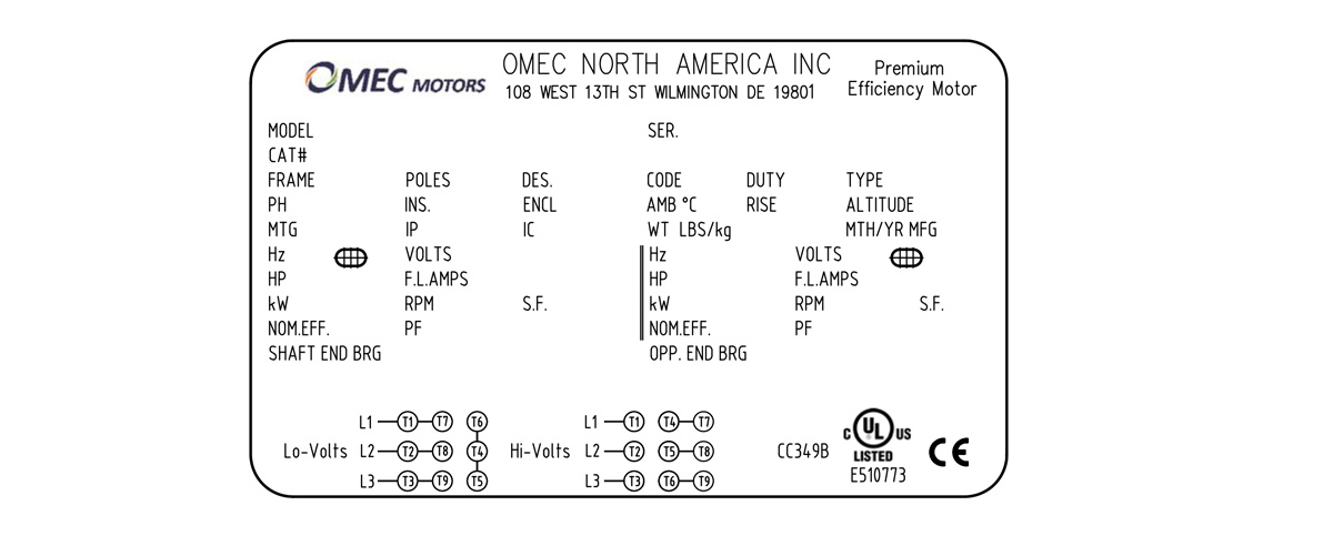 | NEMA TEFC 低壓電機 OMN 143T-2 1.1kW 208-230/460V T |